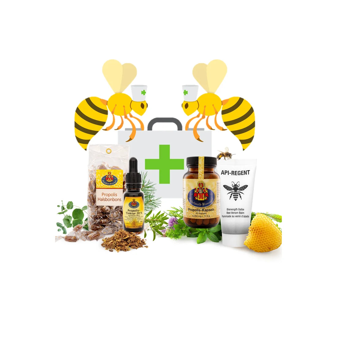 Dr. Biene Erste-Hilfe-Set: Buch "Die Heilkraft der Bienen" plus 5 Bienenprodukte – Abwehrkräfte-Paket mit Propolis und Bienengift.