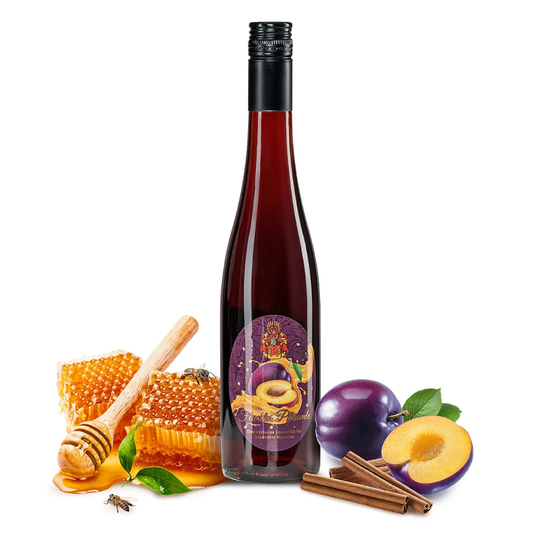 Fruchtiger Pflaume-Zimt-Likör mit Waldhonig in handlicher Probiergröße – elegante Versatilität für Genießer.